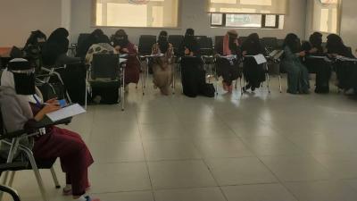 وفي جولة تفقدية داخل القاعات الامتحانية، اطلع الدكتور الحيفي على سير الامتحانات، مؤكداً على أهمية توفير الأجواء المناسبة للطلاب لضمان أداء اختباراتهم بشكل متميز. وأشاد بالجهود المبذولة من قبل الكادر الأكاديمي والإداري في الكلية لضمان سير العملية التعليمية والامتحانية وفقاً للخطط المعدة مسبقاً.