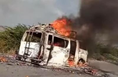 رشاد الجمالي - نجا 17 راكب بينهم 5 اطفال اثر اندلاع حريق باص نوع بلوكة امس في