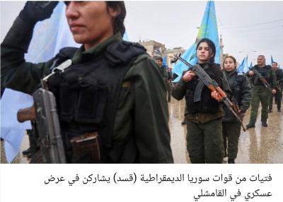 فتيات من قوات سوريا الديمقراطية (قسد) يشاركن في عرض عسكري في القامشلي