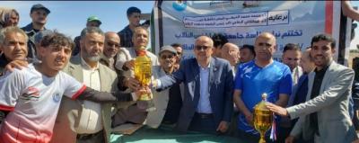 صنعاء نيوز - توج فريق كلية الهندسة بلقب البطولة الكروية بجامعة ذمار على كأس الشهيد محمد عبدالكريم الغماري التي نظمتها نيابة شؤون الطلاب ممثلة بالإدارة العامة لرعاية الشباب