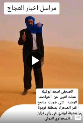 أكد الصحفي أسعد أمبية أبوقيلة، مراسل صحيفة صنعاء نيوز من دولة اليمن، وصحيفة دنيا الوطن من فلسطين، ومراسل إذاعة اليابان الدولية، أن الفيديو الأصلي الذي نشره بتاريخ الثلاثاء 20 يناير 2026م كان حقيقياً وغير مفبرك، موضحًا أن اختفاء صوته في المقطع كان نتيجة قوة العواصف الرملية والترابية أثناء التصوير، وهو أمر طبيعي.