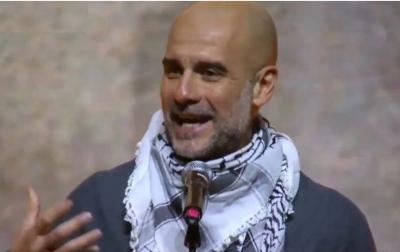 غوارديولا بالكوفية الفلسطينية.. يهاجم الصمت العالمي ويدعم فلسطين علنا (فيديو)