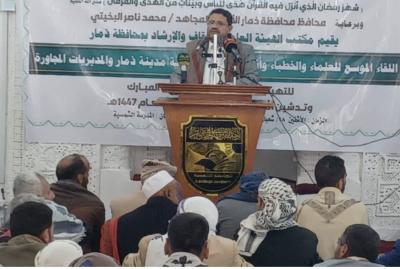 ودعا علماء وخطباء ومرشدي ذمار إلى توظيف رسالة المسجد التنويرية وتوجيهها فيما يجمع الكلمة ويوحد الصف ويسهم في حفظ الأمن والاستقرار ويعزز التلاحم بين أبناء اليمن الواحد.