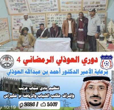 أجريت بمدينة عريب بمديرية مكيراس بمحافظة البيضاء اليوم الرابع من رمضان القرعة لبطولة الأمير الدكتور أحمد بن عبدالله العوذلي الرمضانية في نسختها الرابعة لكرة القدم،والذي ينظمة نادي شباب عريب الرياضي والثقافي بالمديرية وبمشاركة ست فرق كروية،من شباب الأندية وطلاب المدارس والهواء يمثلون أغلب القري وعزل منطقة عريب، وبدعم ورعاية الدكتور أحمد عبدالله العوذلى وتحت شعار(الرياضة الرمضانية تجمعنا).