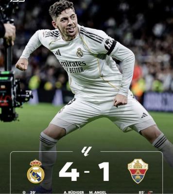 - واصل ريال مدريد فورانه المعنوي فوق بساطة الأبيض محققا فوزا مستحقا على إلتشي المتواضع برباعية في مباراة بيضاء ناصعة من ألفها إلى يائها..