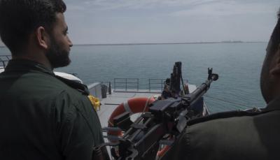 اثنان من أفراد القوات البحرية التابعة للحرس الثوري الإسلامي على متن سفينة حربية ويراقبان منطقة ما خلال استعراض بحري للحرس الثوري بمناسبة اليوم الوطني للخليج ، بالقرب من محطة بوشهر للطاقة النووية في مدينة بوشهر الساحلية، بمحافظة بوشهر، جنوب إيران، في 29 أبريل 2024. / Gettyimages.ru