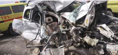ادى حادث مروري مروع وقع ظهر اليوم في منطقة جبى الضيق بمديرية جهران أمام محطة النهمي بالقرب من منطقة رصابة الى وفاة خمسة أشخاص من أسرة منهم ثلاث نساء وأصابة ثلاثة اخرين. باصابات بالغة منهم امراة أوضح ذلك ل الثورة نت العقيد احمد صالح شعبان مدير المرور بمحافظة ذمار مشيرا أن الحادث وقع اثر اصطدام سيارة نوع راف فور بقاطرة كانت متوقفة على جانب الطريق .