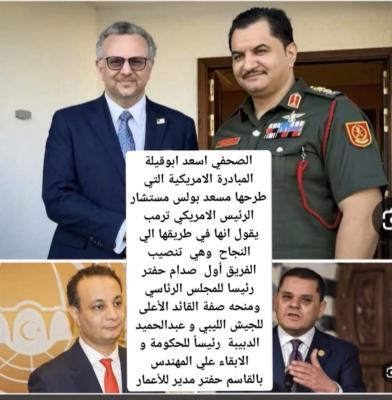 كشف الصحفي والكاتب الليبي، أسعد أمبية أبوقيلة، عن تفاصيل متداولة لمبادرة أمريكية مرتقبة تهدف إلى تغيير المسار السياسي في ليبيا. ووفقاً لما نقله "أبوقيلة" (مراسل صحيفة صنعاء نيوز ودنيا الوطن وإذاعة اليابان الدولية)، فإن المبادرة التي يقودها مسعد بولس، مستشار الرئيس الأمريكي دونالد ترامب، تقترب من تحقيق توافق دولي ومحلي.