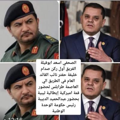 في تطور سياسي وميداني لافت يشهده الملف الليبي، كشفت مصادر مطلعة لـ "صنعاء نيوز" عن استعدادات مكثفة تجري في العاصمة الليبية طرابلس لاستقبال قمة ثلاثية (ليبية – أمريكية – إيطالية)، بالتزامن مع أنباء عن توجه الفريق أول ركن صدام خليفة حفتر، نائب القائد العام للقوات المسلحة، إلى طرابلس في زيارة رسمية هي الأولى من نوعها، لعقد اجتماعات رفيعة المستوى مع رئيس حكومة الوحدة الوطنية عبدالحميد الدبيبة.