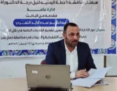 مناقشة الخطة البحثية لنيل درجة الدكتوراة التنفيذي ادارة عامة من الباحث عبدالكريم